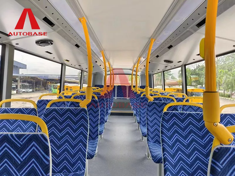 Det intelligente interiøret i to nivåer er konfigurert for optimal kapasitet og komfort. Den tilbyr en imponerende total passasjerkapasitet på 98 personer pluss 1 sjåfør. Sittearrangementet inkluderer 82 faste seter pluss førersete, gjennomtenkt fordelt med 55 seter på øvre dekk for panoramautsikt og 27 seter på nedre dekk. Oppsettet er ytterligere forbedret med 2 sammenleggbare seter for fleksibilitet og 4 dedikerte prioriterte seter, noe som sikrer en inkluderende reiseopplevelse for alle passasjerer.Denne 12 meter rene elektriske dobbeltdekkerbussen står som den ideelle løsningen for byer som tar sikte på å redusere sitt karbonavtrykk betraktelig samtidig som de imøtekommer høye passasjerbehov på kjerneruter, og tilbyr en uovertruffen passasjer-teknologi og høy kapasitetsdesign.
